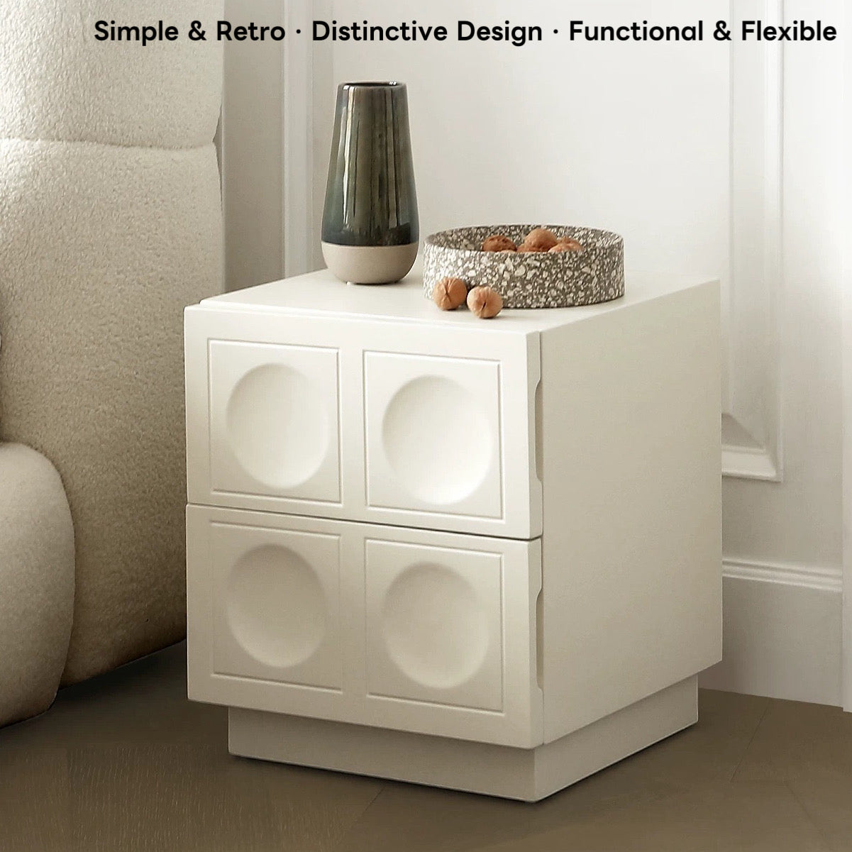 Cubeo Bedside Table(Cream White)