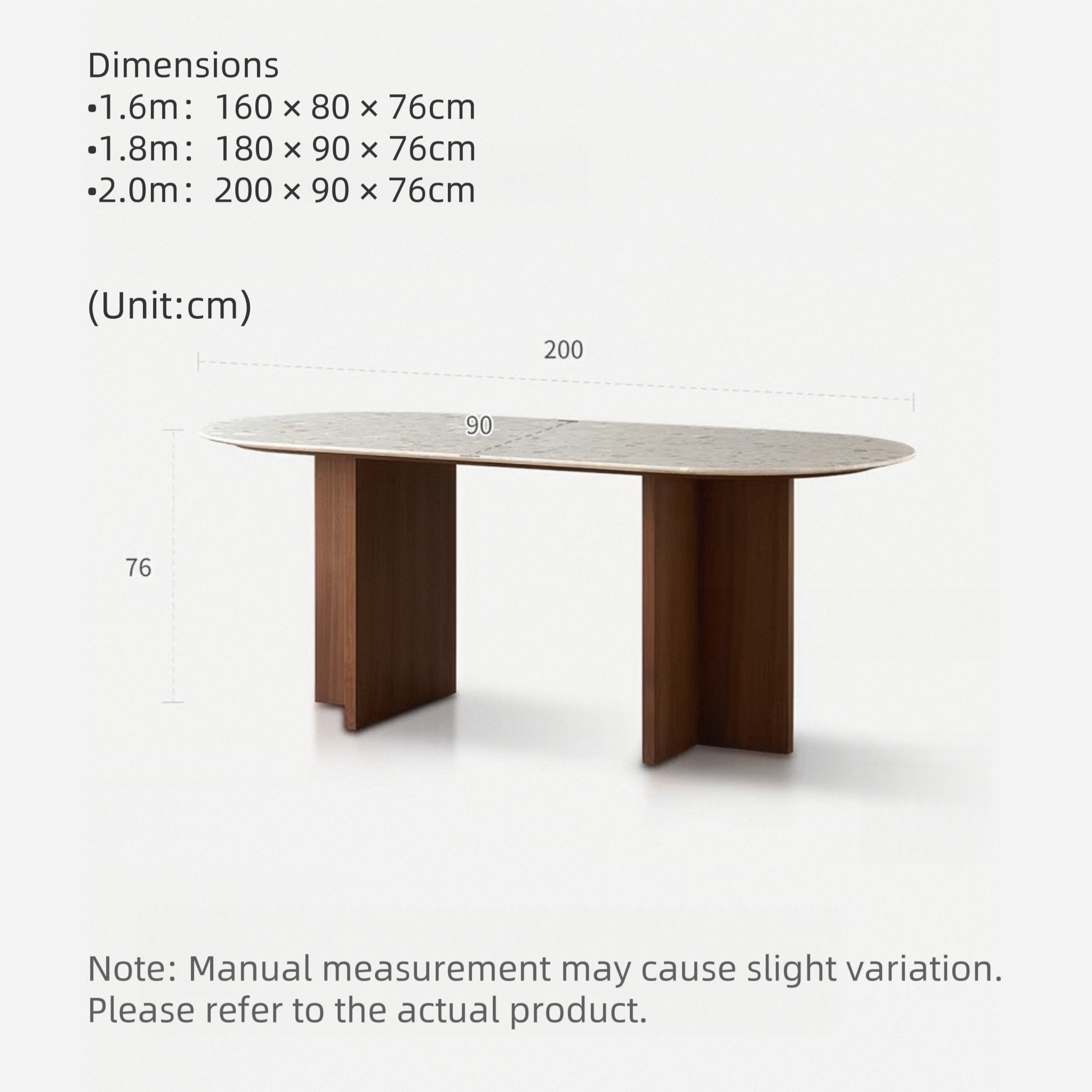 W200×D90×H76 cm