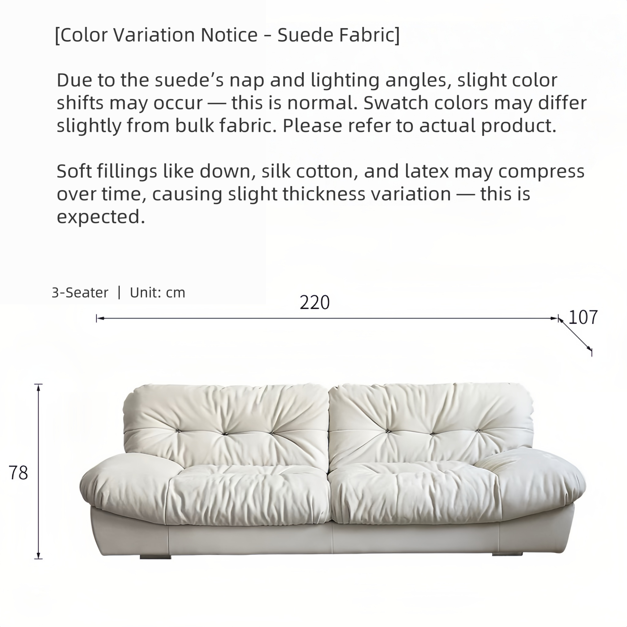 Dimension (260): W260 × D107 × H78cm Dimension (220): W220 × D107 × H78cm